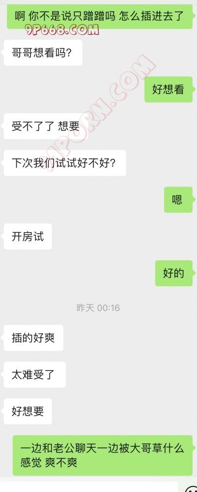 被陌生的人鸡吧在妻子的骚逼边上来回摩擦,感觉好刺激,于是就发生了下面的对话