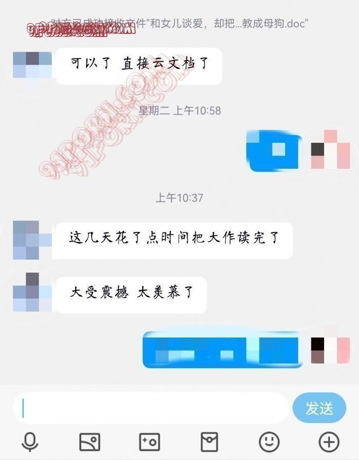 色友说我写的每一个字都让他细细品味,写的实在太好了。感觉自己的东西得到了别人的认可,很是高兴